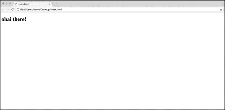 上述代码示例显示的内容是"ohai there!",围绕内容的两段文本称为 HTML 标记。